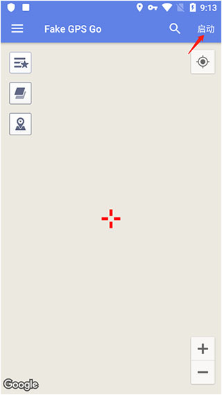 1、进入Fake GPS Go虚拟定位软件,点击右上角启动