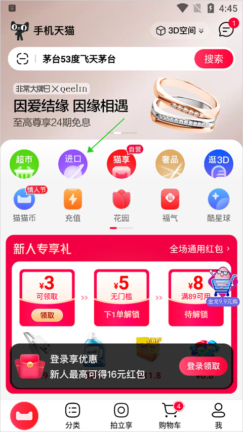 天猫国际app叫手机天猫app,用户可以通过在手机天猫app首页中点击【进口】