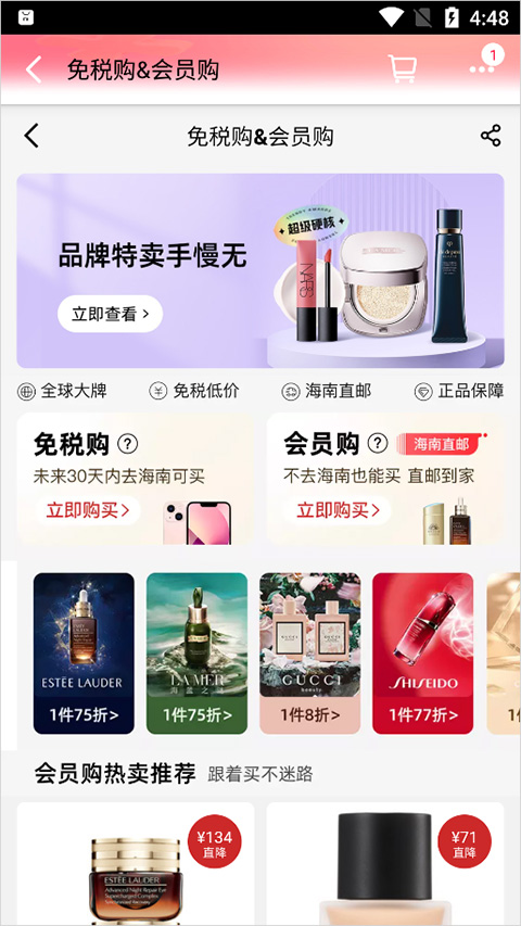 也可以进行海外产品的购物,并提供免税优惠