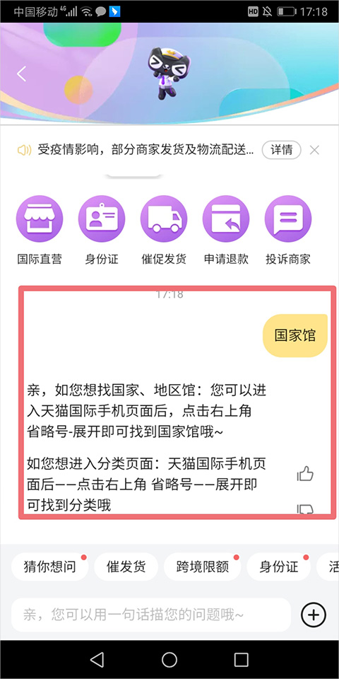 天猫国际app国家馆怎么搜索