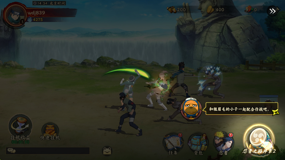 2、战斗中可畅爽释放标志性忍术大招,炫酷特效高度还原,带来极致视觉体验;