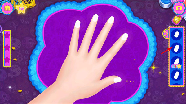 4、涂好指甲油后,玩家可以选择工具栏中的装饰品,给指甲添加装饰;