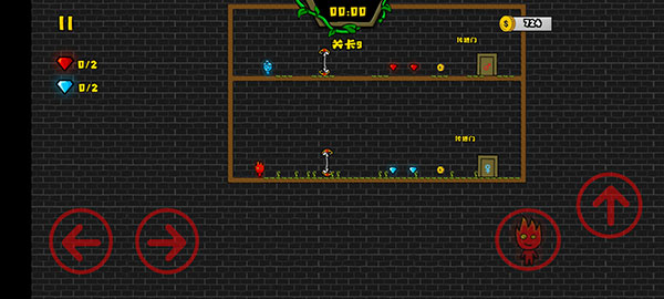3、两个冰火人都不能接触与自己不同颜色的液体,对应不同的特性。