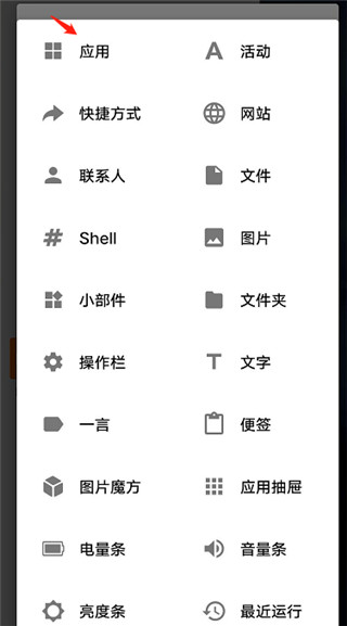 4、内容可以添加快捷应用、快捷方式、网址、联系人以及图片、小部件、音量条、亮度条和手机基本统计信息、便签等等,更加的方便