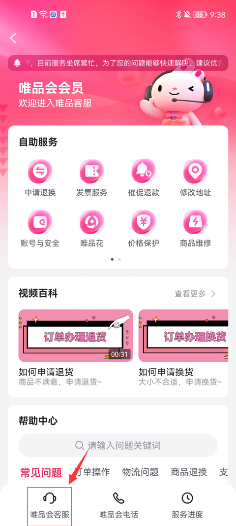 进入唯品客服界面,再次点击【唯品会客服】图标