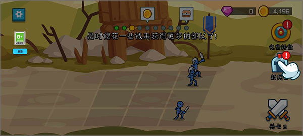 1、在战斗过程中,玩家将自己的兵种升级强化,帮助你更加容易获取胜利。