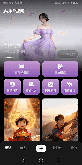 1、打开纳米P视频官方版app选择需要的ai功能进行创作
