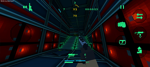 1、在本站下载安装进入游戏之后,我们可以看到一个长走廊,滑动右边的摇杆进行移动;