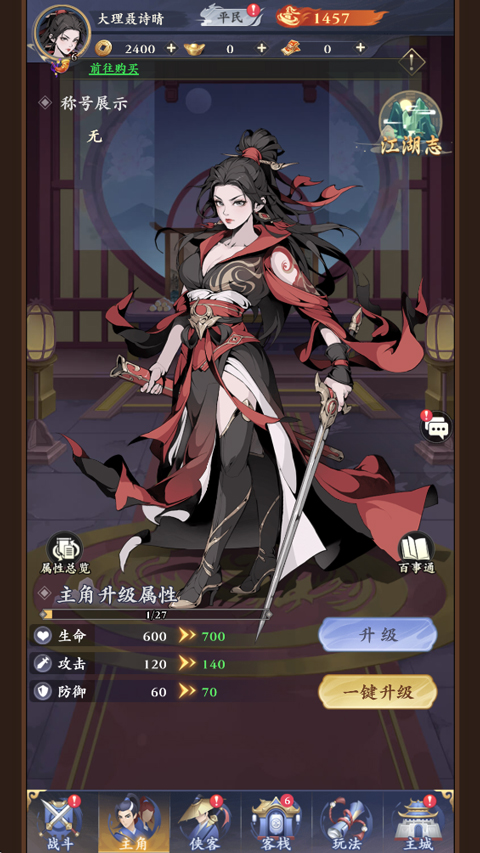 1、游戏以宏大江湖世界观为基底,汇聚百位性格鲜明、技能独特的侠客角色。