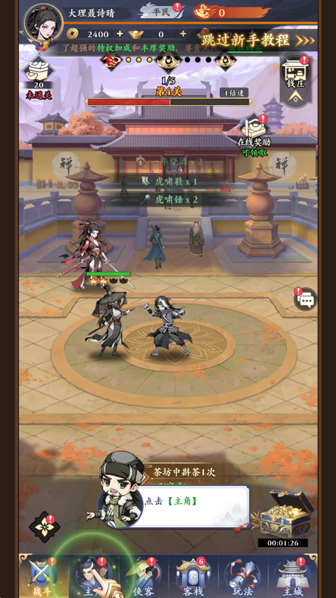 5、以及在客栈招募武林侠客,然后搭配阵容一同战斗。