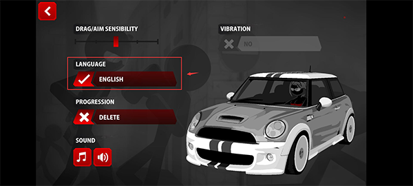 1、打开暗杀行动手机中文版游戏后,默认是英文的,我们点击右上方设置按钮需要设置一下;