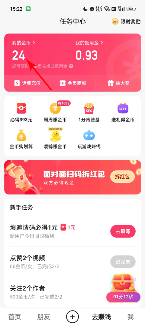1、在首页点击去赚钱,进入到任务中心;