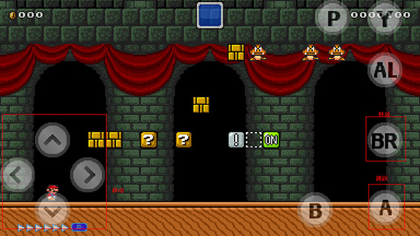 7、这时,“A”为跳跃,“BR”为发射,接下来就开始马里奥闯关吧!