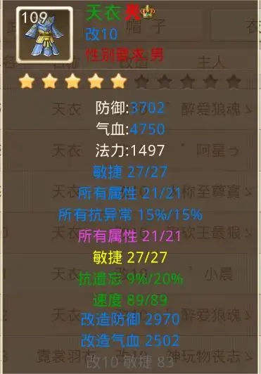 3、防具衣服:所有属性+所有抗异常+敏捷、粉黄所有属性/所有抗异常+敏捷,绿属性以高暗速为主