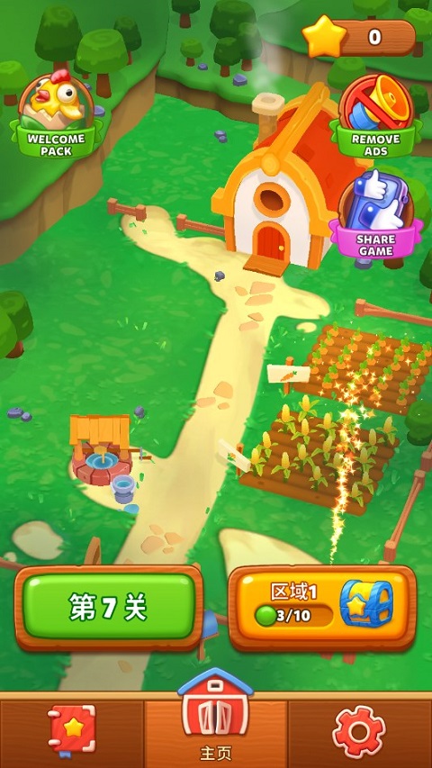 3、星星的获取可以通过关卡获得,之后使用星星建造农场。