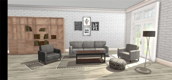 游戏目标:利用拖拽的方式,装饰情景中的各项家具事物,金币可通过消除获得,可自由从三种默认的家具中挑选你所中意的装饰品来填补这个原本十分简陋的房间,游戏没有具体的标准,全部完成家具的装扮,还会以不同的镜头为你展现你设计的家居风采。