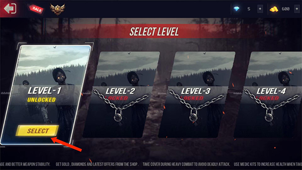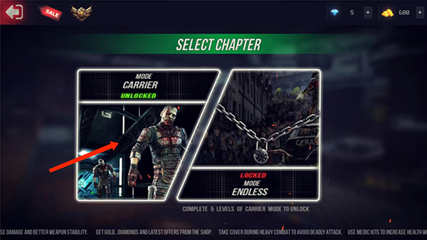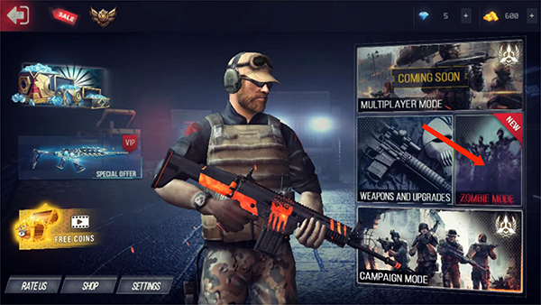 1、打开终极战斗打击最新版,进入游戏主界面,选择右方【ZOMBIE MODE】僵尸模式选项,