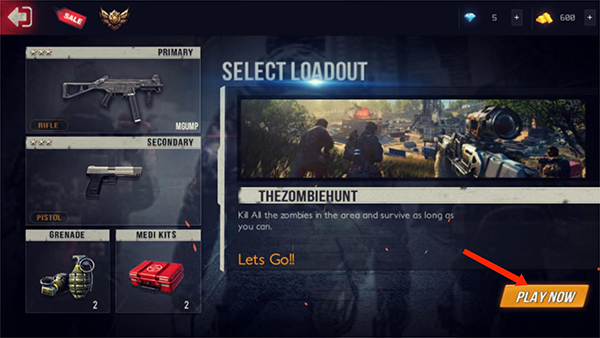 5、装备完成后,我们选择右下角【PLAY NOW】就可以开启僵尸模式了,