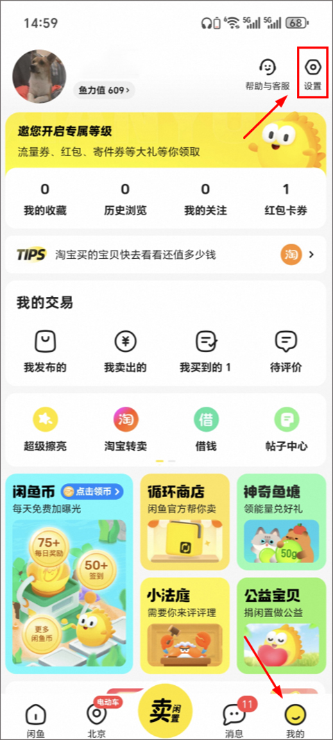 1、打开闲鱼最新版,进入后点击右下角“我的”;