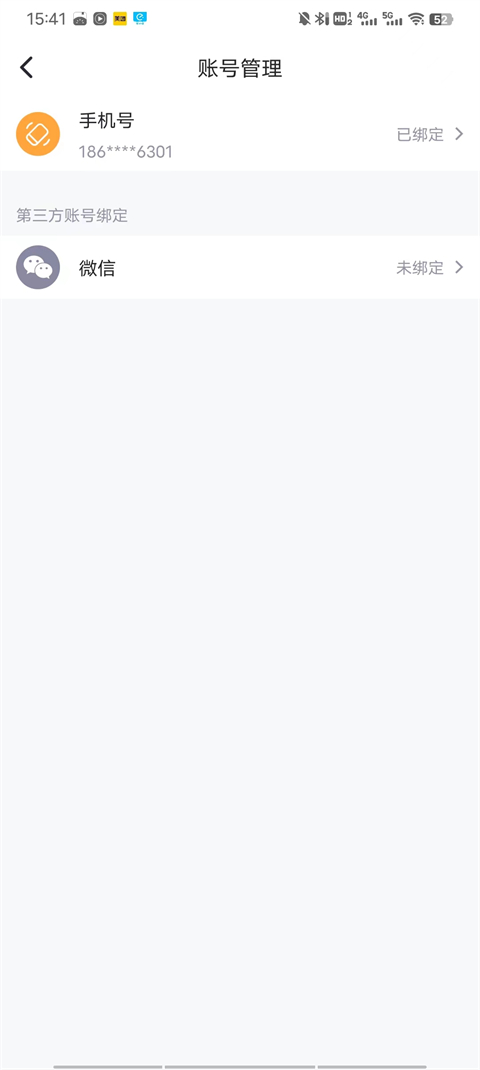 2、进入设置页面后,点击账号管理后选择微信。